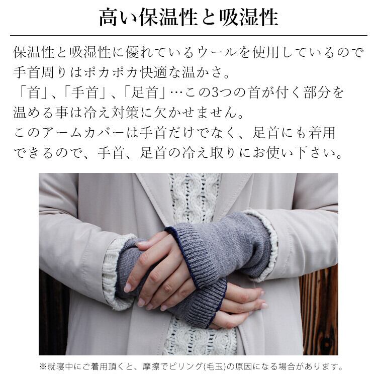 「手袋は温かいけど、用事をするときには不便…」そんな時に役立つのが、このアームウォーマーです。アクリルやウールを使用しているので、手首からとっても温かい!さらに!お洋服に合わせてお色味を変えることができるリバーシブル仕様なので、気分次第でお色を変更できます。
